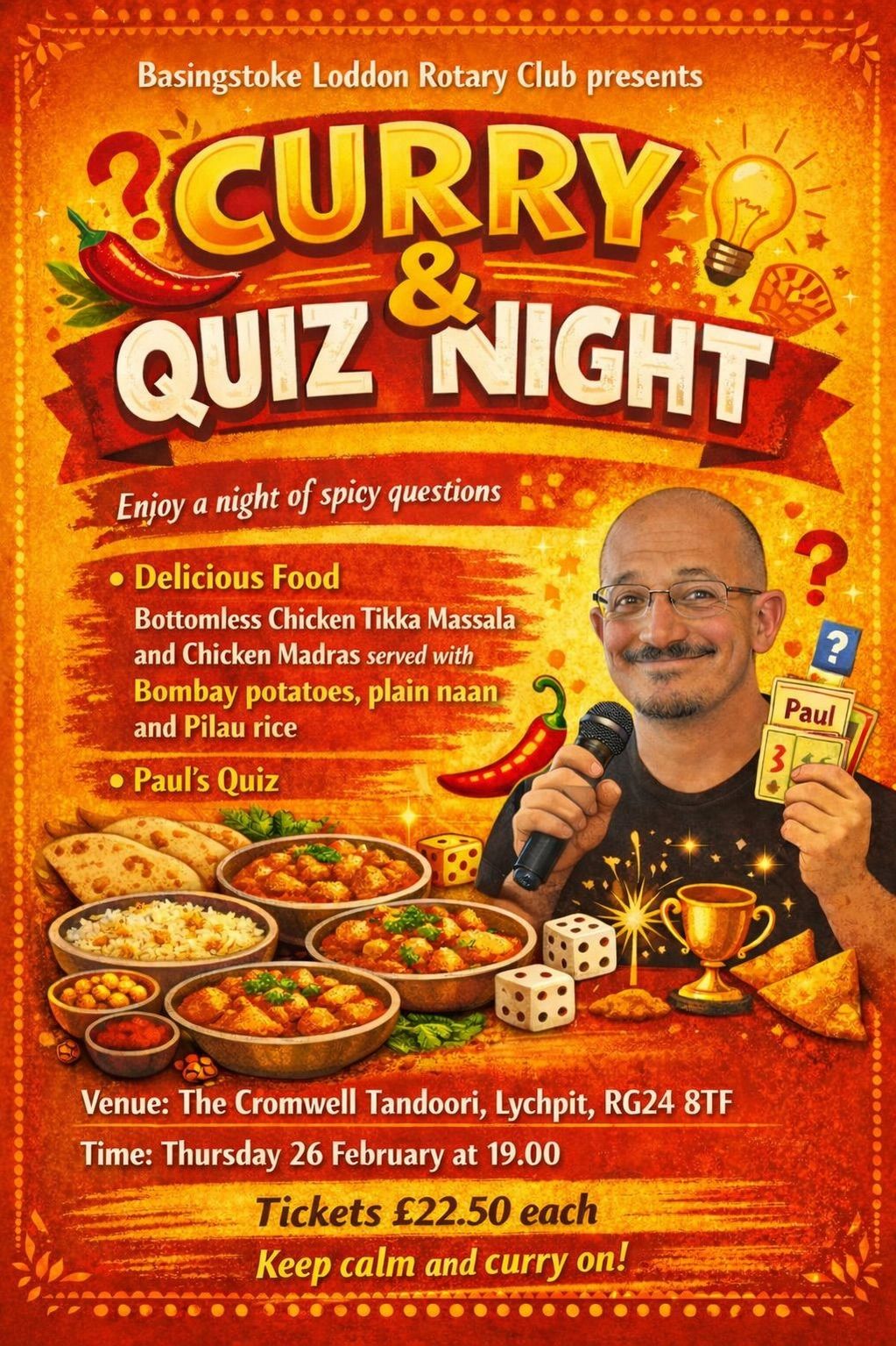 Basingstoke Loddon Rotary is holding a charity evening at the Cromwell Tandoori restaurant in Basingstoke on the 26th February 2026 from 6:30pm.